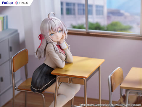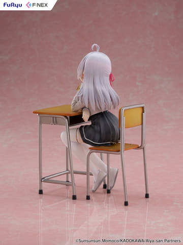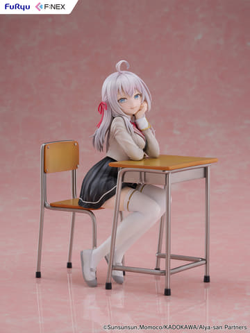 本フィギュアのためにデザインされたオリジナルポーズで立体化され、アーリャらしい可憐さを引き立てる微笑みの表情や机に座った姿が丁寧に造形されている。