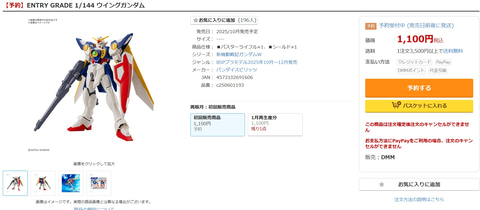 - 【DMM通販:「ENTRY GRADE 1/144 ウイングガンダム」販売再開】