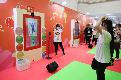 今回のイベントでは「ガシャポン公式ソング ガシャPOP」が大きく取り上げられているが、ダンスグループのパワーパフボーイズが登場して振り付けのポイントを紹介してくれるステージイベントや、モニターの映像に合わせてダンスに挑戦できるコーナーなども用意されている。会場の出口付近には物販コーナーも用意されており、公式ガシャ活グッズなども購入できるようになっていた。