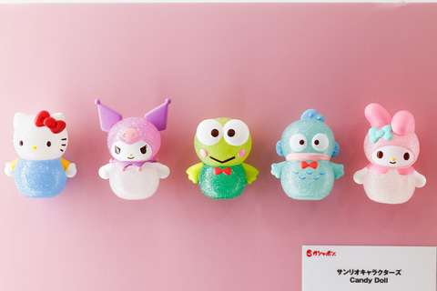 まずは「新商品ストリート」のエリアのアイテムからをご紹介していこう。今回イベントでは、10月以降の新商品が展示されていた。そのうち、12月に登場するアイテムが「サンリオキャラクターズ ゆるっとめじるしアクセサリー」と「サンリオキャラクターズ おふとんかぶりっこ2」、「サンリオキャラクターズ Candy Doll」である。