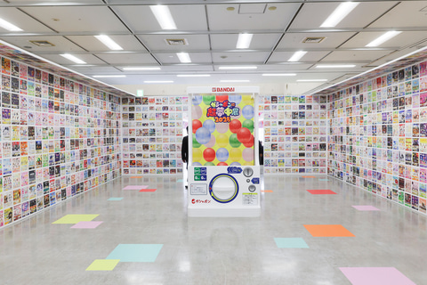 会場内では、大きく分けて7つのテーマに沿って様々な展示や体験ができるようになっていた。まずエントランスを通り抜けて最初にたどり着く場所が「超ガシャポン空間」だ。こちらは壁一面に、この1年間で発売された商品のディスプレイシートがずらりと並べられたエリアとなっている。