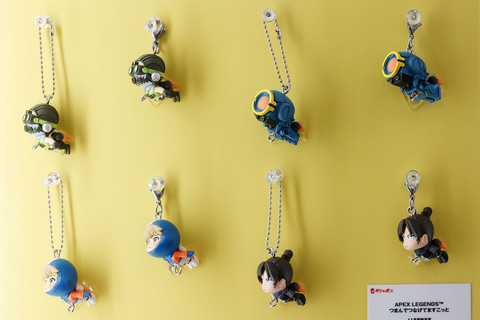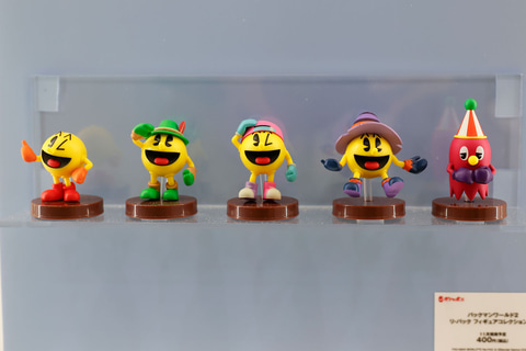 ゲーム系キャラクターのガシャポンには、FPSのエーペックスレジェンズや最近アニメ化もされたグノーシア、こちらも定番のマインクラフトなどに加えて、たまごっちなども登場。さらに、少し懐かしいタイトルとしてサルゲッチュやパックマンワールドなどもラインナップされている。