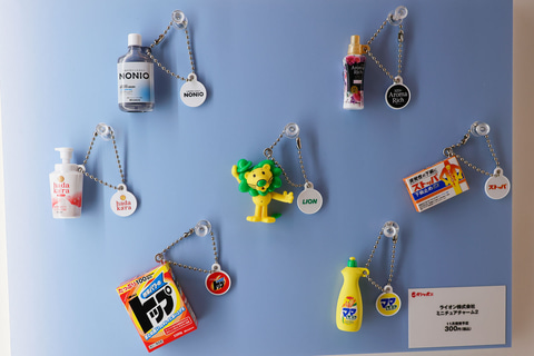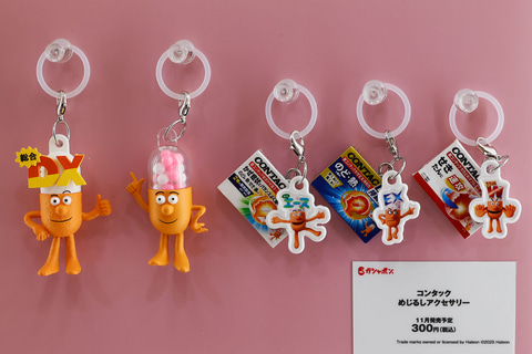 「新商品ストリート」に展示されていた、キャラクターもの以外のアイテムもなかなかバラエティ豊かだ。こちらには、楽器関連のアイテムや自動販売機などに加えて、カルビーやライオン、コンタック、アリナミン製薬など、企業とコラボしたアイテムも登場する。