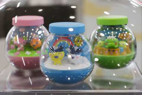 先ほどの「新商品ストリート」とは別に、特定のジャンルの商品がピックアップされた「ガシャポンオリジナルシリーズエリア」も登場。こちらでは、「いきもの大図鑑」や「VIRUSWEETS」、「まちぼうけ」といったオリジナルIPのアイテムに加えて、「めじるしアクセサリー」や「フラットガシャポン」、「プレミアムガシャポン」などのコーナーも用意されていた。ここでは、その中から今後発売予定の気になるアイテムをいくつかピックアップする。