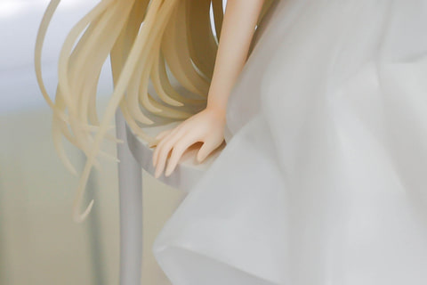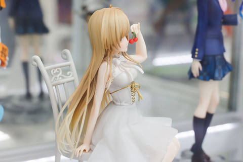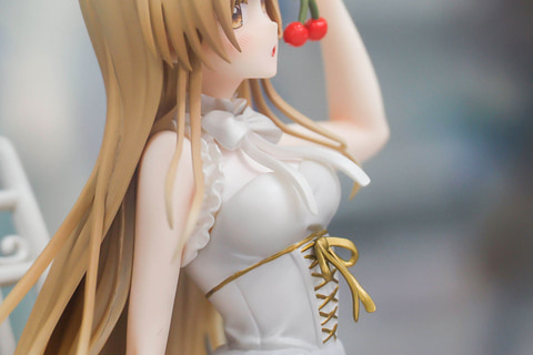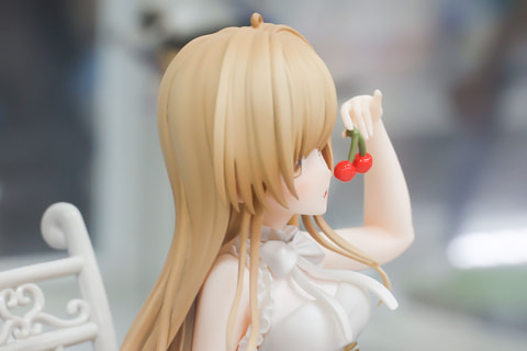 今回は衣装と同じ白い椅子に座った姿になっており、こちらもカフェなどでよく見かけるようなおしゃれなデザインが採用されている。衣装の白さと肌の白さに加えて、足元も白いパンプスを履いているほか、台座部分も真っ白で、統一感のあるスタイルになっている。